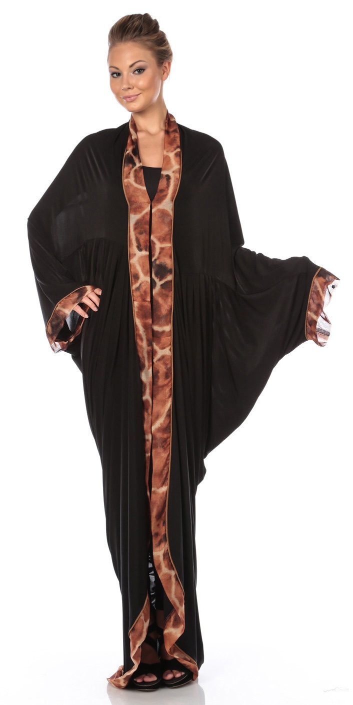 Leopard print decor Applique work Abaya carry modern cuts and style made for fashion conscious Lady. who know how to be with fashion being in budget and styling herself in a new way.Pick this abaya in 150$ only.