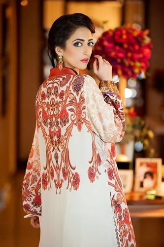Hey girl's! get ready to travel for latest lawn exhibition 2014 So here is another fashion news for exhibitions lover that "Uzma & Afsheen" is organizing Spring lawn exhibition on 27th and 28th February 2014 at "Sweet Affairs bakery cafe" Gulberg, Lahore. In latest exhibition, Uzma & Afsheen is bringing a chic and luxury Summer Lawn Prints in your city. These summer dresses are featuring chiq digital prints because - modern lady demands sartorial elegance to cater the stylish personality. Digital prints has been drawn on floral patterns, building sketches, Architecture Illustration and digitized the folk Art in printing. Uzma and Afsheen has used vigorous form of royal silk and informal chiffon fabrics for Spring Exhibition 2014. Tailoring style is ordinary but tricky because Silk dresses has Chinese neckline, collar neck and other classical neck designs made on funky tunics paired with Capri's and extra short tights. These tunics and Capris are best for formal gatherings, informal events to casual trends so have a look for more idea before going to Uzma / Afsheen Spring / Summer Exhibition 2014.